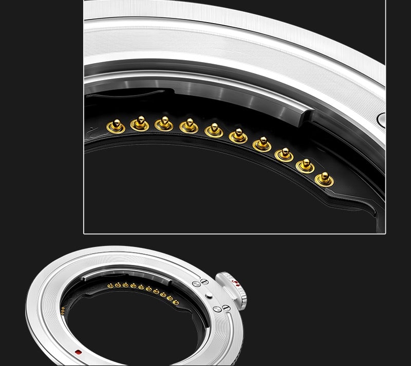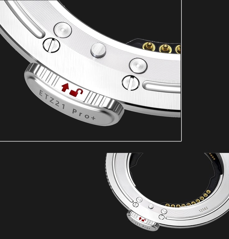 Megadap propose désormais la version Megadap ETZ21 Pro+ qui se distingue de la Pro par une construction plus robuste. Les contacts internes sont renforcés, les broches ont été retravaillées et l’ensemble gagne en durabilité, ce qui en fait une option plus rassurante pour un usage intensif. La Pro+ ajoute également un joint d’étanchéité pour mieux résister à la poussière et à l’humidité, un point important si vous photographiez en extérieur ou si vous manipulez souvent votre matériel.