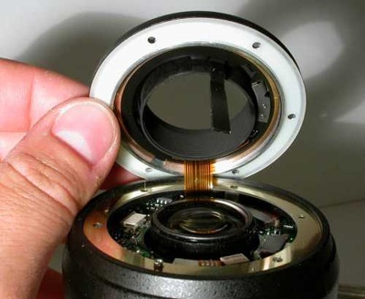 Je ne décris pas plus en détail cette opération car il doit y avoir autant de systèmes différents que d’objectifs… mais il faut simplement démonter tout ce qu’il faut afin de garder le flex attaché à la monture. On se retrouve sur le forum pour les cas particuliers.