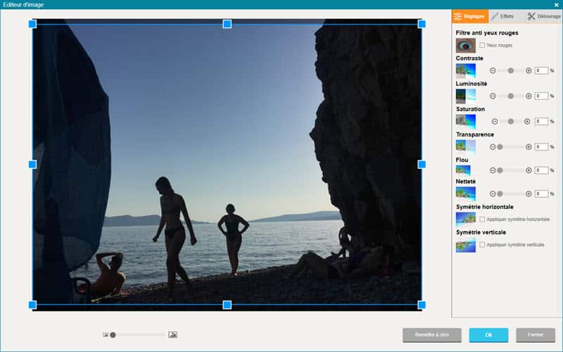 recadrage, modification du rendu, symétrie sont ajustables pour tenir compte de la mise en page