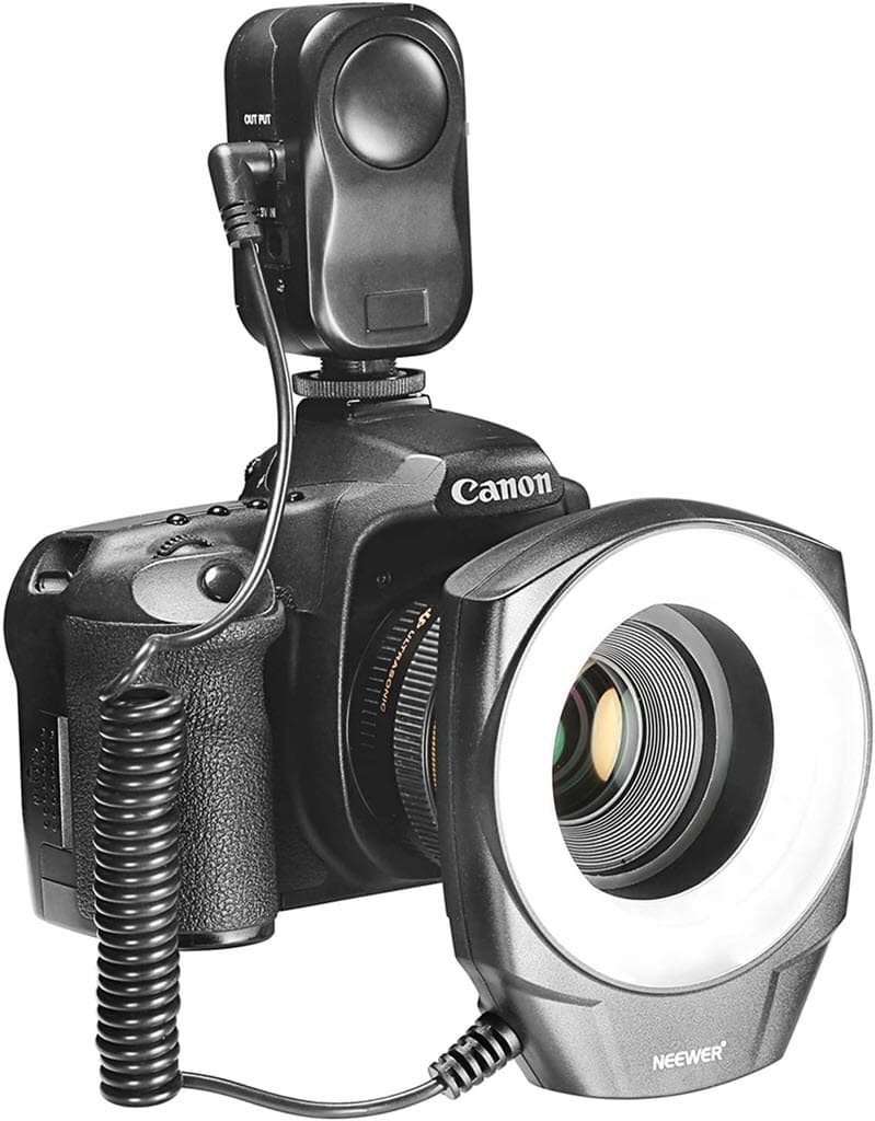 Pour gérer exposition et lumière en macro, vous pouvez utiliser un flash annulaire en version LED. Si vous ne vous sentez pas l’âme bricoleuse pour fabriquer le vôtre, sachez qu’il en existe de nombreux modèles à des prix compétitifs. La température de couleur des LED doit être équilibrée avec la lumière du jour afin d’éviter les dérives colorimétriques.