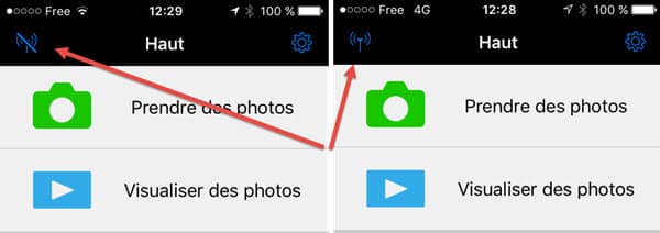Vous pouvez choisir de transférer les photos sur le mobile dès la prise de vue ou ultérieurement. Ce choix se fait depuis le menu réglages de l’application. Prenez soin de configurer la taille des photos souhaitées sur le mobile afin d’éviter de télécharger des fichiers de trop grande taille si ce n’est pas requis (par exemple envoi par mail ou réseaux sociaux).