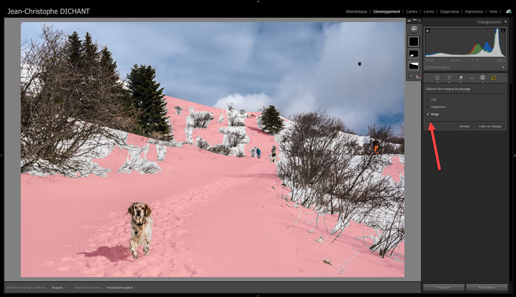 Le masquage assisté par l’IA détecte désormais la neige. Vous pouvez sélectionner automatiquement ces zones pour ajuster, par exemple, balance des blancs et exposition très rapidement. Adobe annonce aussi une meilleure détection des ponts.